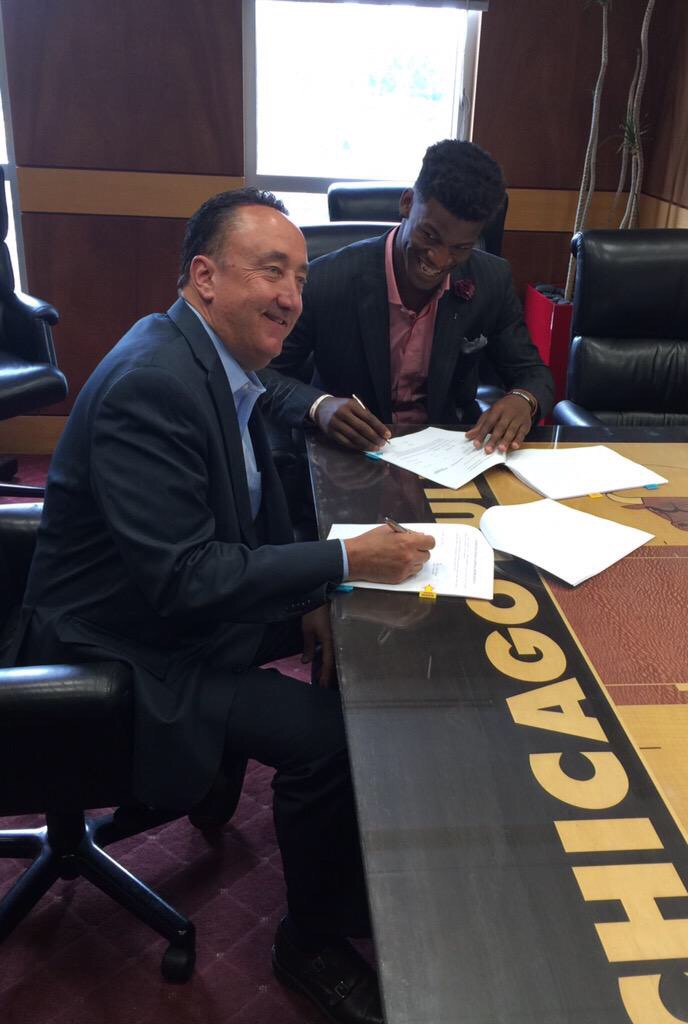 Jimmy Butler made his Bulls contract official today by inking the deal. It has been reported that the contract is worth about $95 million/5 years. There is also an option to opt out after the fourth year.