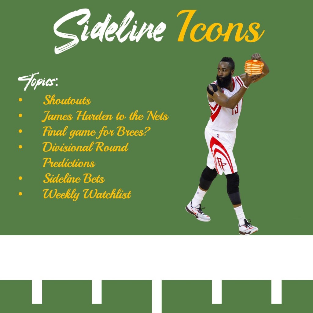 The group gets together to talk about the latest drama in the NBA, James Harden demanding a trade and being shipped to the Brooklyn Nets. They discuss the trade and speculate on the fit in the Nets locker room. Then they discuss the upcoming weekend slate of NFL playoff games and give some predictions. The show closes out as always with some Sideline Bets and the Weekly Watchlist. Enjoy!