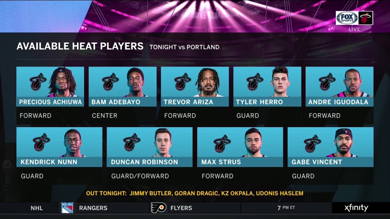 - Andre Iguodala (Lanphier/Heat)- 17 minutes, 3 points, 1/1 FG, 1/1 3PT, an offensive rebound, 5 total rebounds, an assist, a steal, a turnover, and +11 in a 125-122 loss to the Trail Blazers.