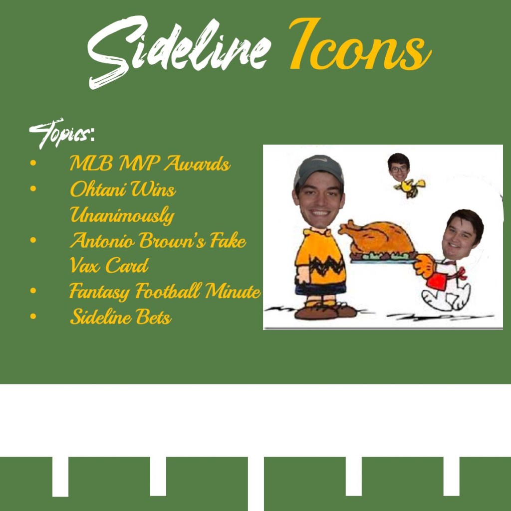 On this week’s episode of Sideline Icons we shout out the MLB MVP winners, but question the methods of the MLB for announcing the winners at random. We also discuss Antonio Brown having a fake vaccination card and how many other players may be doing the same thing to avoid the NFL protocols.