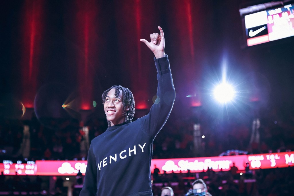 Ayo Dosunmu (Morgan Park) did not play Thursday night but was honored by the University of Illinois at the State Farm Center in Champaign, Illinois.