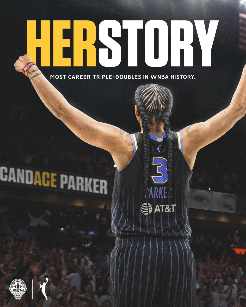 This performance gave Candace Parker her third career triple-double which passed Sheryl Swoopes, Courtney Vandersloot, and Sabrina Ionescu who all are tied with two apiece.