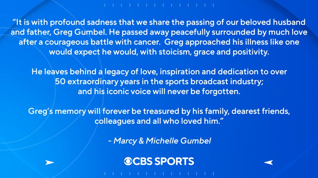 It was announced Friday afternoon that Greg Gumbel passed away at the age of 78.