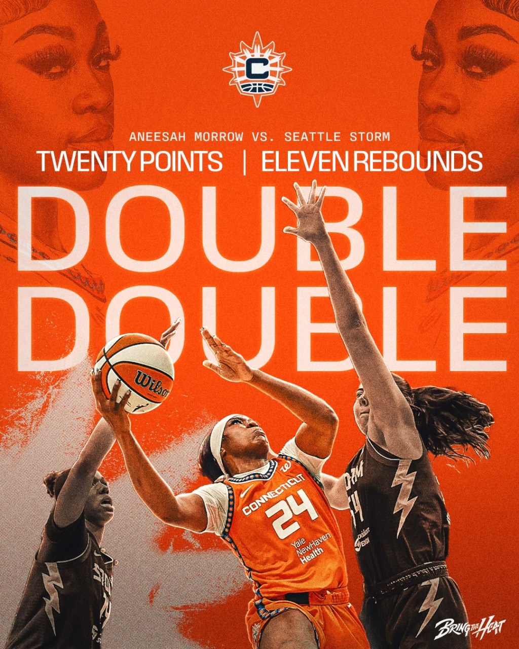 Seattle Storm defeated Connecticut Sun, 97-81. Aneesah Morrow (Simeon) had a team-high/career 20 points (9-14 FG, 2-2 3PT) and 11 rebounds for her first career WNBA double-double. She also had an assist, two steals, and a -1 plus-minus in 27 minutes off the bench. Her four offensive rebounds were a game-high. Morrow and two others had a team-high three tunrnovers.